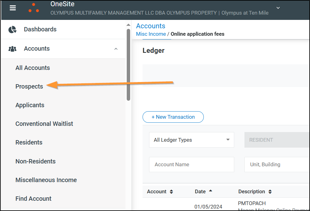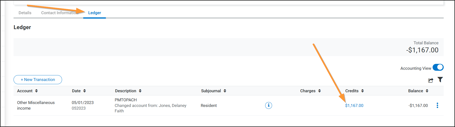 Click on the Ledger > We can see that this is for a resident but we want to see the payment details so Click on the Amount