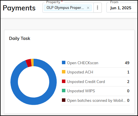 - Anything in Open CHECKscan (Even if only filtered for your property, may show others - If you don't have any, disregard) - Only action if you have an outstanding batch that needs to be closed or deleted