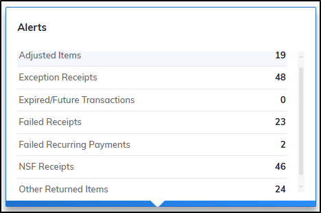 - [Action Item] - NSF Receipts - These are payments that were returned for Insufficient Funds - You'll need to process the NSF
